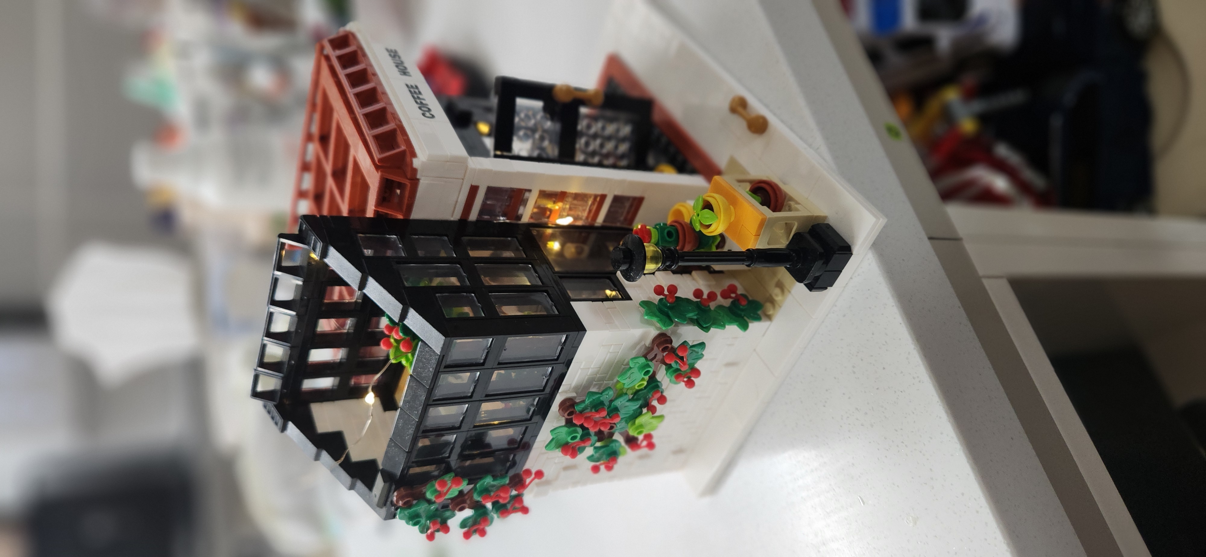 크리에이티브 시티 라이트 선샤인 커피 하우스 빌딩 블록 모델 세트, MOC 스트리트 뷰 모듈 건축,