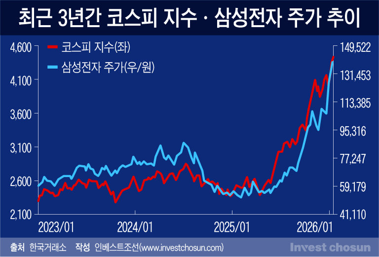 삼성전자 상승과 함께 **코스피**도 사상 최고치를 경신했습니다. 지수 상승을 견인한 핵심 종목이 바로 삼성전자입니다.