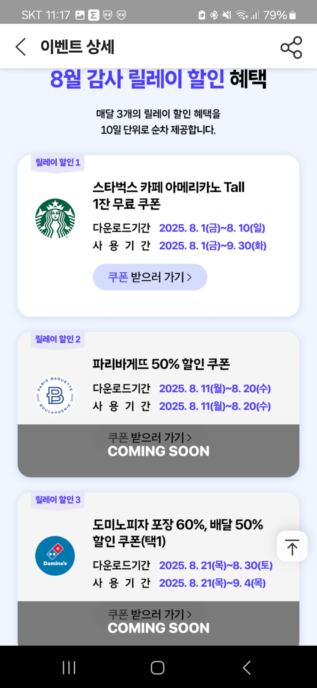 다 귀찮고 SKT인데 스타벅스 쿠폰만 받게 해 줘라 하시는 분 아래 링크 클릭해서 받아 가세요!